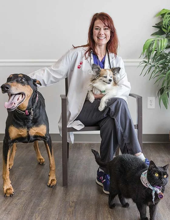 Dr. Boger, a native of Charlotte, grew up surrounded by a wide variety of animals, including dogs, cats, rabbits, parakeets, guinea pigs, hamsters, fish, and horses. Her parents also made sure she contributed financially to their care, so she took on chores, babysat, and eventually got a job. In high school, she worked as a kennel attendant at a local animal hospital, where she met Dr. Lee, another kennel attendant. They became fast friends and long-time colleagues.